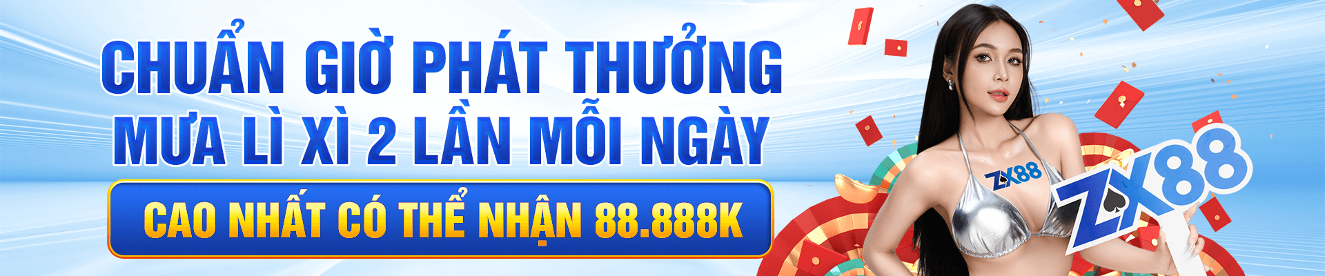 Đến với nhà cái ZX8804 Com người chơi không cần phải suy nghĩ nhiều về những ưu đãi tiền thưởng, khuyến mãi độc quyền 2 lần mỗi ngày giá trị 88,8888K vào lúc 14 giờ và 1,888,888,888K và lúc 20 giờ mỗi ngày